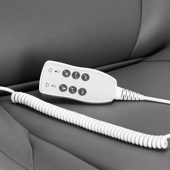 A wide range of up-down electrical adjustments allows for individual adjustment of the chair height to the height of the person performing the procedure and the type of procedure.