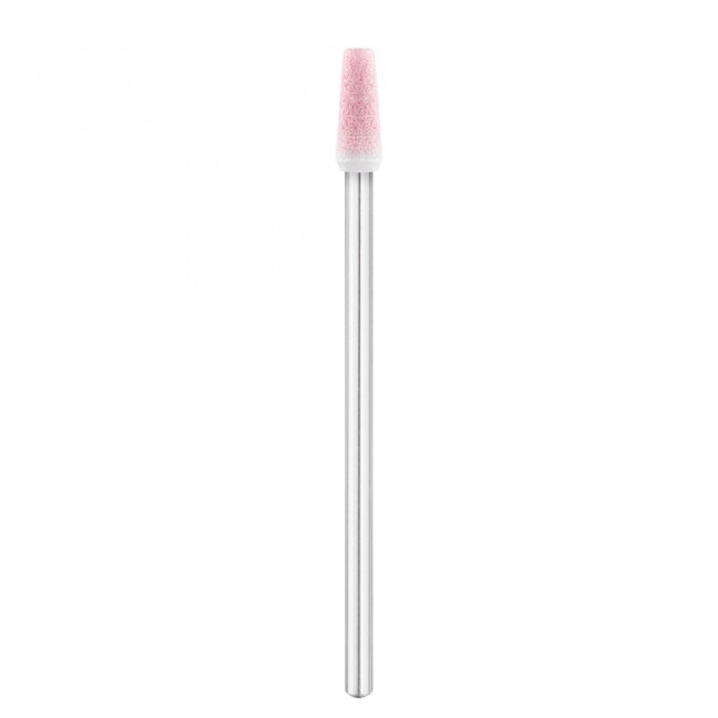 Stone cone-shaped cutter in pink. The cutter is used to remove cuticles, it is used for manicure and pedicure procedures. Ideal for processing nails around the nail bed, removing thickened cuticles, etc.