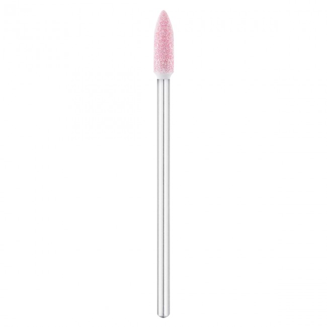 Flame-shaped stone cutter in pink. The cutter is used to remove cuticles, it is used for manicure and pedicure procedures. Ideal for processing nails around the nail bed, removing thickened cuticles, etc.