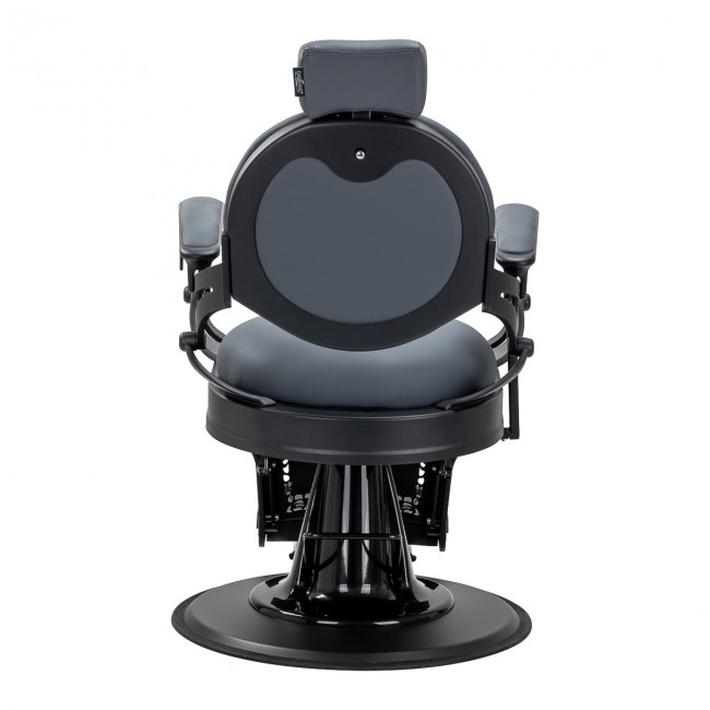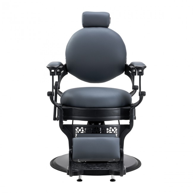 The sturdy construction of the base ensures stability and high comfort. Seat padding made of durable, deformation-resistant foam and upholstery made of pleasant-to-touch synthetic leather with a matte finish ensure the durability of the furniture and its comfortable use for a long time. The materials used also make the equipment resistant to moisture, durable and easy to clean. The covering in shades of graphite and the decorated footrest give it a unique character. The armchair with its distinctive design, referring to the vintage style, fits perfectly into the atmosphere of barbershops, emphasizing their unique atmosphere.