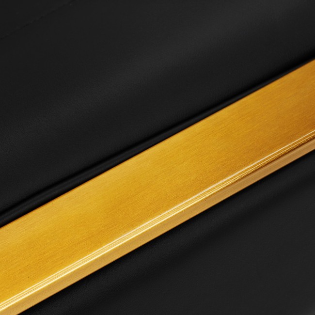 The filling made of durable, deformation-resistant foam and the upholstery made of pleasant-to-touch synthetic leather ensure the durability of the furniture and its comfortable use over the years . The materials used also make the equipment resistant to moisture, durable and easy to clean . The covering in shades of black, aesthetic stitching and elements in shades of gold give it a unique character . The modern design of this equipment makes it fit perfectly into the atmosphere of many professional salons, giving them a unique style.