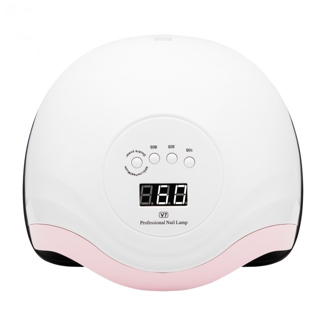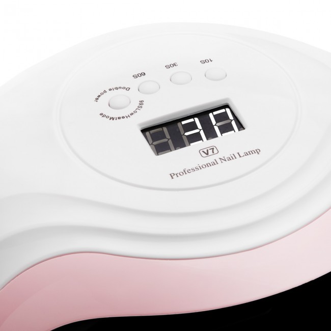 The latest generation, professional UV/LED lamp, which quickly and evenly cures all gels, hybrid varnishes and other light-curing preparations thanks to the use of dual led technology. It emits white light that does not tire the eyes. The V7 lamp has an energy-saving light source with high power and a double range of 365nm and 405nm waves. In addition, 36 diodes that give a total maximum power of 168W! The lamp has a built-in motion sensor, timer 10, 30, 60 and 99 seconds, and after turning on the sensor, it lights continuously for up to 99 seconds. The 99-second "Low Heat Mode" mode is a mode in which the lamp power gradually increases every 30 seconds. It reduces the feeling of burning during the application of building gels. A large electronic display makes it easier to control the time.