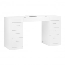 The stylish cover in shades of gold is made of shiny, synthetic material and decorated with quilted hearts . It is resistant to moisture , and additionally does not retain dirt, dust from filed nails does not stick to the material . Keeping it clean is extremely simple - just wipe with a sponge or cloth during treatments. It is fastened with a zipper , so if necessary, it is easy to remove to replace or clean more thoroughly.