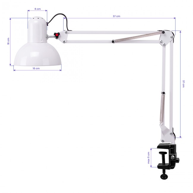 The PiX 314 treatment lamp with the option of mounting to a countertop has been designed with comfort of use in mind. Thanks to its adjustable frame, it provides excellent lighting during precise treatments, ideally suited to professional salons, where the right light is crucial for the quality of services - such as nail styling, care or make-up. It is also perfect for preparing materials for social media - taking photos or recording videos of the effects of work. Please note that the bulb is not included in the set, which allows you to choose the model best suited to your individual needs . Simply choose a bulb with E27 thread with a maximum power of 60 W to fully use the functionality of the lamp.