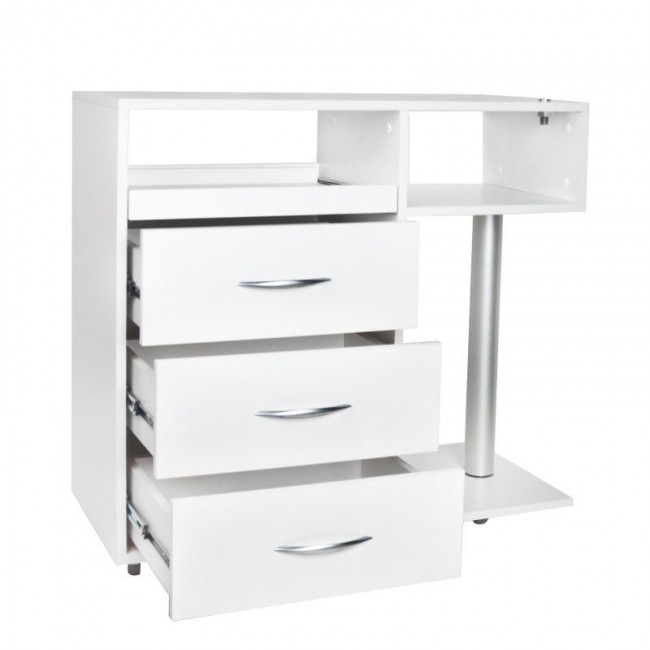 Solidny unit podologiczny Y-300 został stworzony, aby ułatwiać pracę osobie wykonującej zabiegi. Trzy pojemne szuflady pomieszczą wszelkie potrzebne akcesoria, narzędzia i produkty. Znaczącym atutem jest wysuwana półeczka, na której można umieścić niezbędne w pracy podologa urządzenia, takie jak sterylizator czy frezarka. Będzie również doskonałym miejscem na przybory czy preparaty, które warto mieć stale pod ręką. Mebel wyposażony jest w kółka, co usprawnia pracę i jego przestawianie. Pozwalają one łatwo transportować go między pomieszczeniami. Uchwyt TUBE pozwala na mocowanie lampy bezpośrednio do blatu w dowolnym jego miejscu. Pomocnik wykonany jest z trwałych materiałów, łatwy w czyszczeniu i będzie znacząco usprawniał przeprowadzanie specjalistycznych usług.