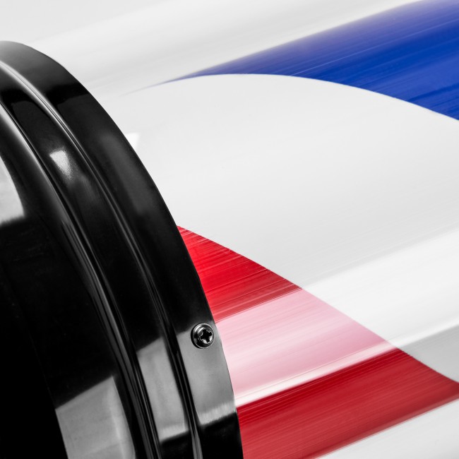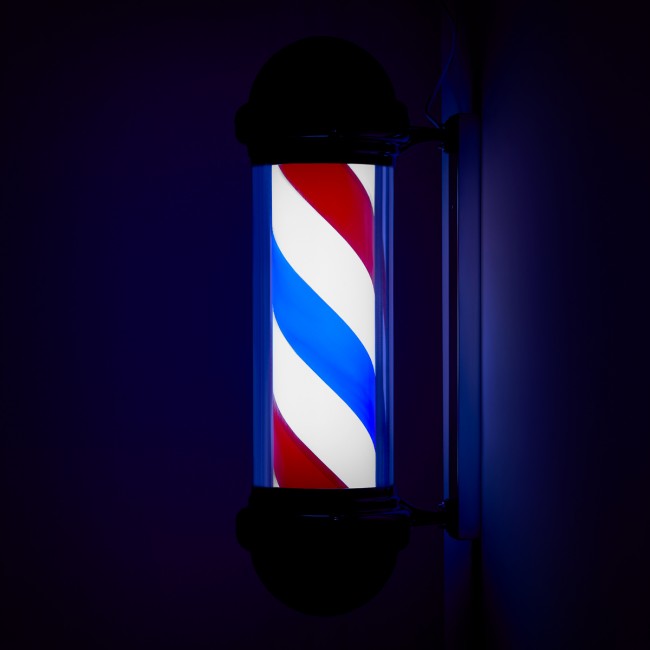 The eye-catching illuminated ceiling lamp , equipped with a rotating cylinder, is an excellent advertisement for a barbershop. The characteristic design , with rotating elements in red, white and blue, creates a unique, internationally understood business card of a hairdressing salon. Using the remote control on the cable , you can turn on both the lighting and the rotation of the ceiling lamp.