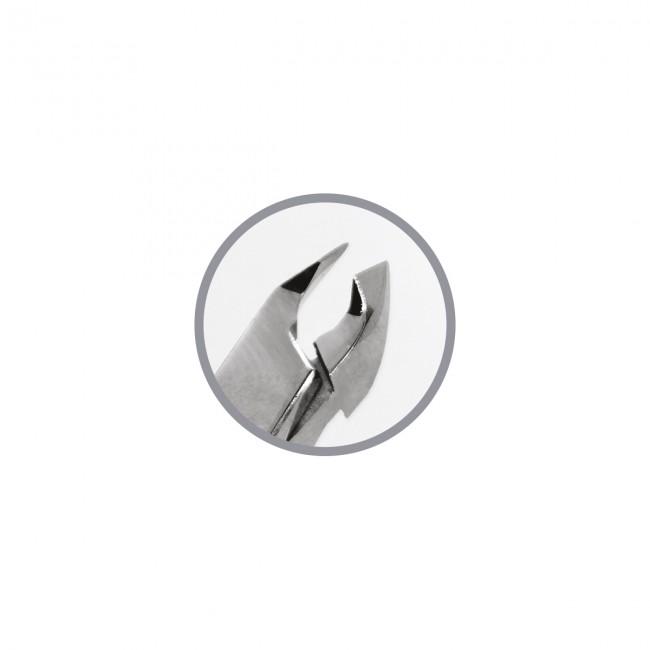 Cuticle nippers are made of the highest quality stainless steel. This is a durable and precise tool with a sharp cutting surface (0.5 cm). The special design of the blade makes the nippers perfect for both foot and hand work. The model is equipped with a secured double-spring mechanism. The tool can be sterilized in an autoclave. The nippers are especially recommended for use in beauty and podiatry salons.