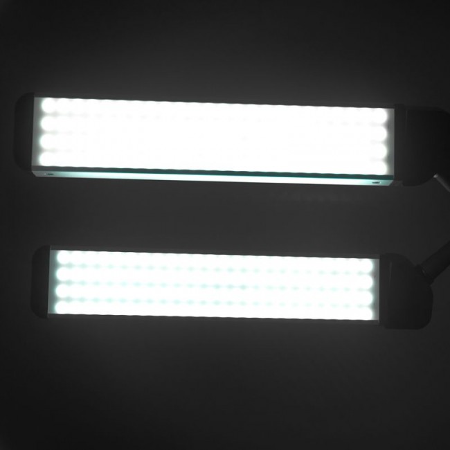 Thanks to the use of 192 LEDs, we get balanced lighting without color discoloration or unwanted heat emissions, similar to daylight. It has two heads placed on flexible arms. This design guarantees even lighting with cold light, thus eliminating shadows.