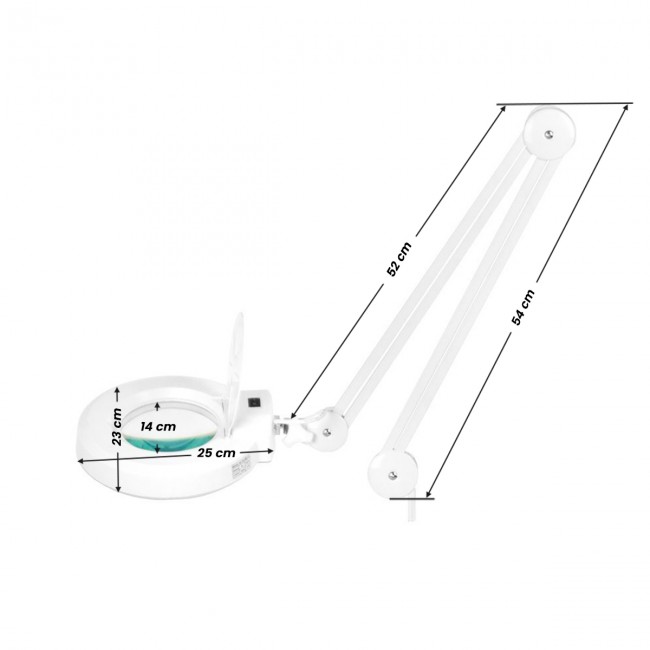 Magnifying glass lamp 5 diopters, LED lamp on a four-arm stand. It allows you to view the skin in magnification while providing good lighting. Also used for manicure and pedicure treatments, permanent make-up, epilation. It has high visibility, anti-reflective glass and a fluorescent lamp that shines with white bright light without causing eye pain during longer work. It is ideal for beauty, dental and veterinary clinics and is used in