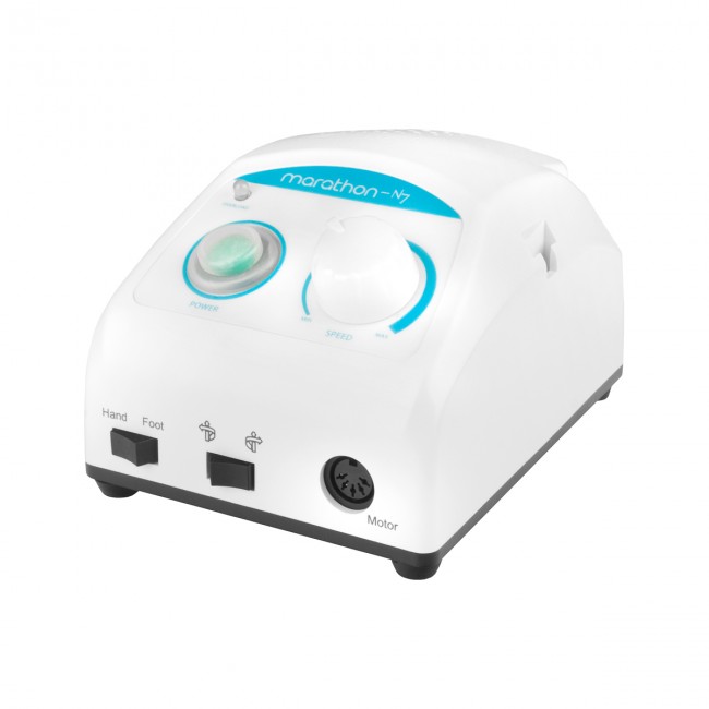 The Marathon N7 milling machine from the Korean company Saeyang is a great tool for manicures and pedicures, as well as for prosthetic work. The company has been awarded many times for its exceptional achievements, and its products are recommended by cosmetologists and prosthetists. Nearly five decades of experience is a guarantee of receiving a product of the highest quality.