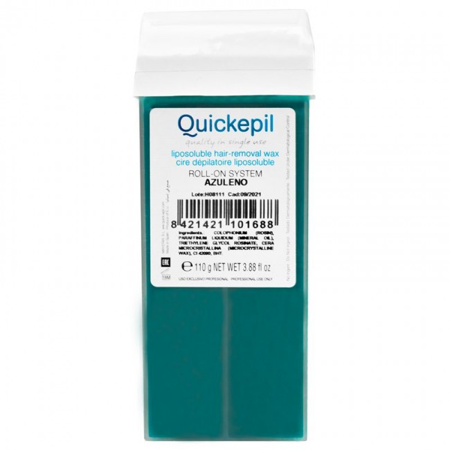 QUICKEPIL roll-on wax is specially designed for beauticians looking for excellent results. Thanks to its special formula, the roll-on wax stretches into much thinner strips, which causes it to cool almost immediately, minimizing burning. The product is then easily removed using the strips. The azulene contained in it has a soothing and anti-inflammatory effect, perfect for sensitive skin, prone to irritation.